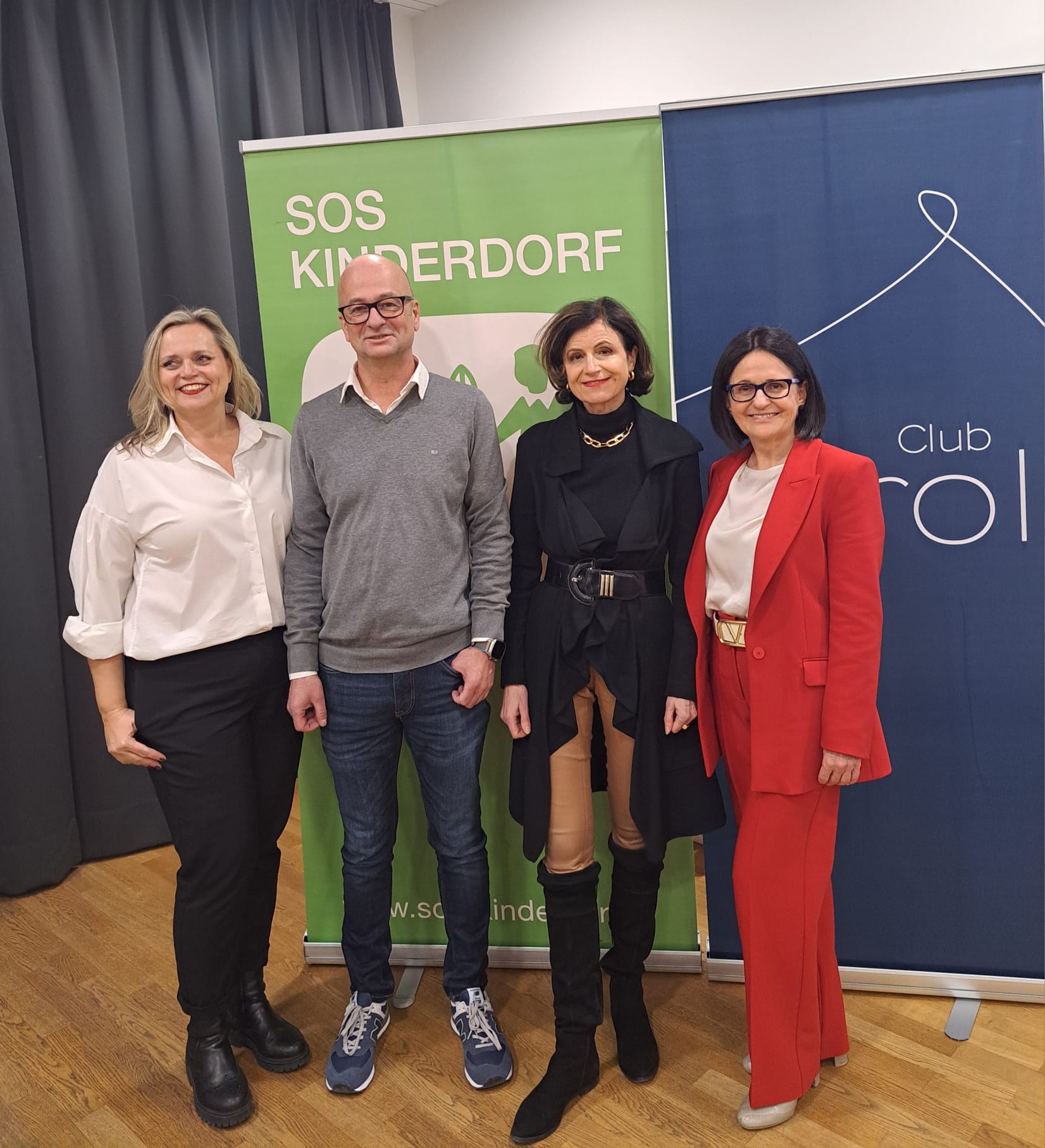 v.l.: Manuela Mader und Ivo Schärmer, SOS-Kinderdorf, Club Tirol-Vizepräsidentin Renate Danler, Sigrid Neureiter, Lead Expert Group „Marketing und Kommunikation“ im Club Tirol